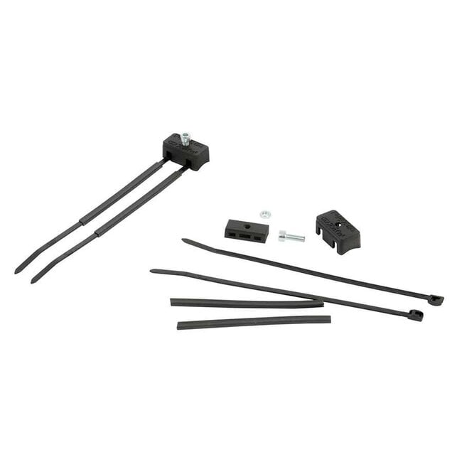 Chaque pince s'attache grâce à 2 colliers rilsan (tie-wrap) standards, pour plus de facilité à déplacer ou à transférer sur un autre vélo