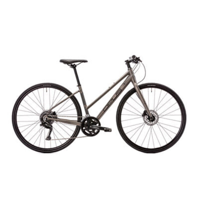 Orpheo 9 with its stepthru frame is a good all aroud hybrid bicycle with Shimano 2x9 speeds and hydraulic brakes. Designed in Canada