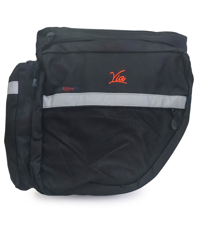 Sac latéral en cordura.- Vendu par paire.- Bande réfléchissante.- Panneau en fibre de verre.- Fermeture éclair.- 28 litres.