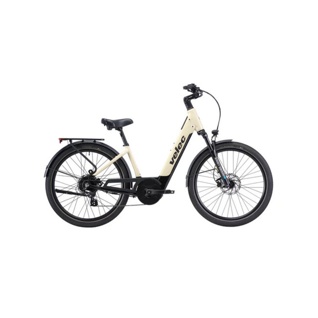 Velec E-bike has a One size step-thru frame with 500 Watts motor. Fully Equipped with rack, fenders, lights.