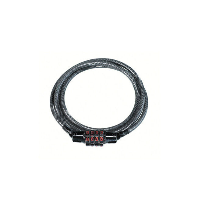 4’ x 3/16” self-coiling, combination cable lock for use as a bicycle component or accessory theft deterrent