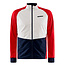 This warm and stretchy cross-country ski jacket features wind- and waterproof panels at front and sleeves as well as recycled polyester jersey at back for enhanced moisture transport and ventilation. In addition, light quilted padding at front provides extra warmth and comfort. Comes with two zippered front pockets and taped details at front, sleeves and back.