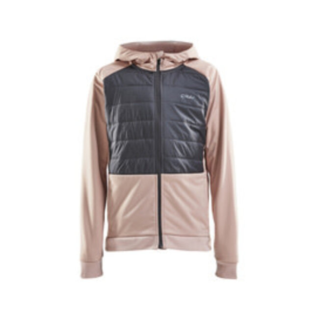 Manteau de ski de fond pour enfants isolant avec tissu protégeant des intempéries au niveau du torse, et panneau avant et capuchon matelassés.