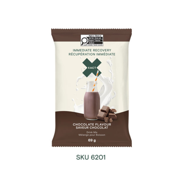 La plupart des produits de récupération passent à côté des besoins réels des athlètes d’endurance —trop pauvres en glucides et trop centrés sur les protéines. XACT Immediate Recovery fournit l’équilibre idéal : 43 g de glucides, 14 g de protéines laitières, sodium, potassium et calcium, dans un sachet de 68.5.g. Fabriqué à Montréal avec du lait entier en poudre, il se mélange instantanément à l’eau pour une boisson crémeuse qui goûte comme du lait au chocolat. Une solution complète, prête en quelques secondes.