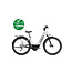 Vélo à assistance électrique E3 avec son cadre taille unique barre basse, moteur Shimano. Équipé de phares, garde-boue et porte-bagages.